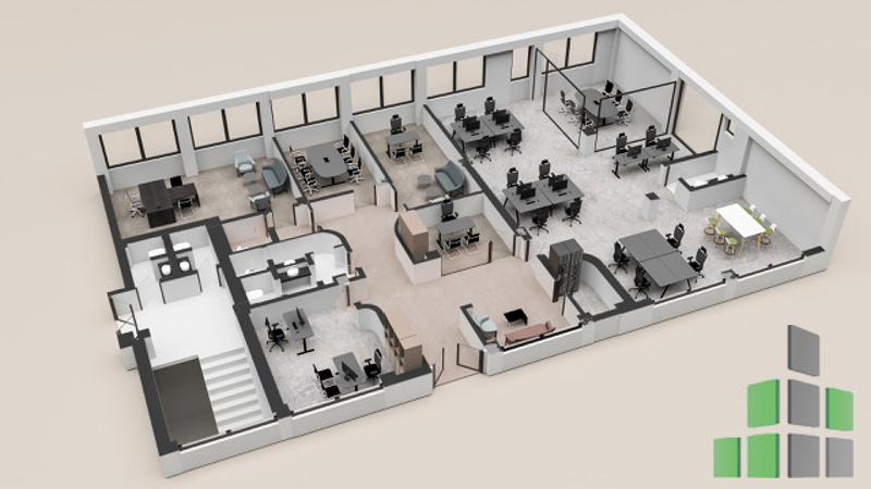 Деловен простор со вкупна површина од 666 м², составен од:
